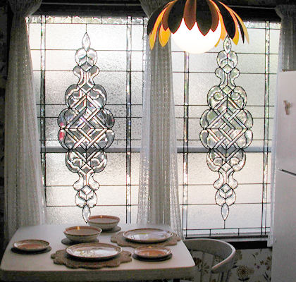 leaded beveled glass, etchings, mosaics,